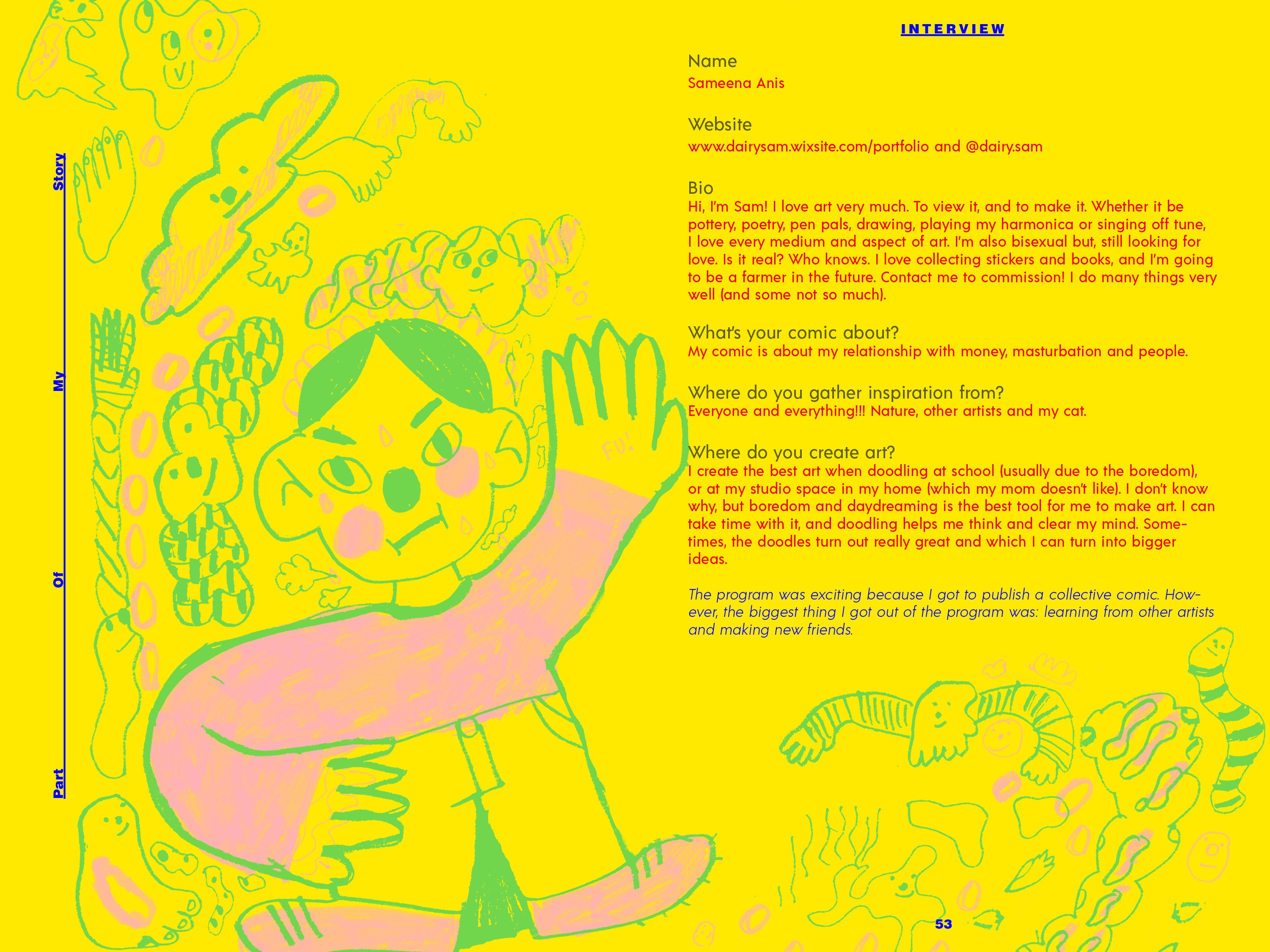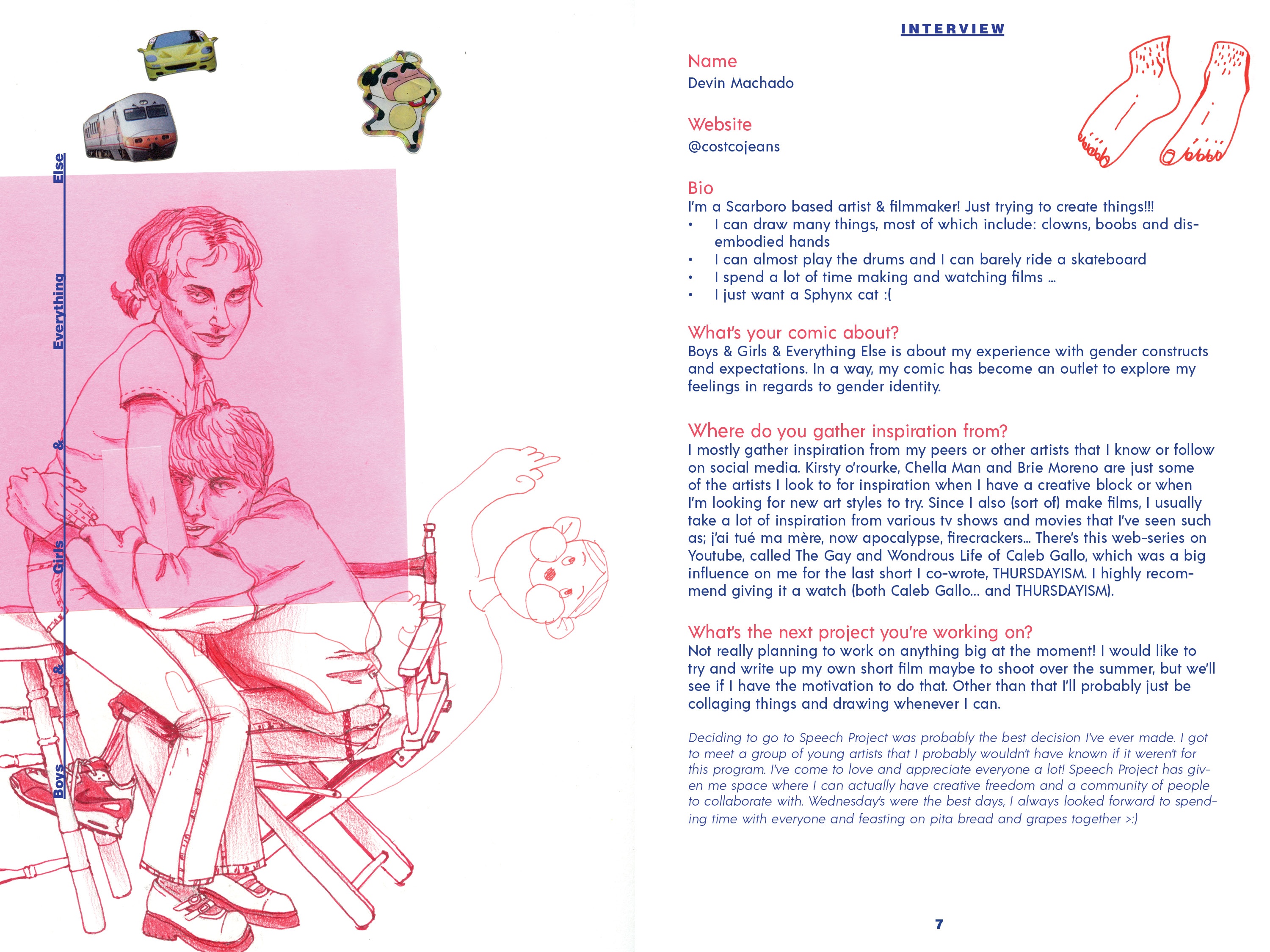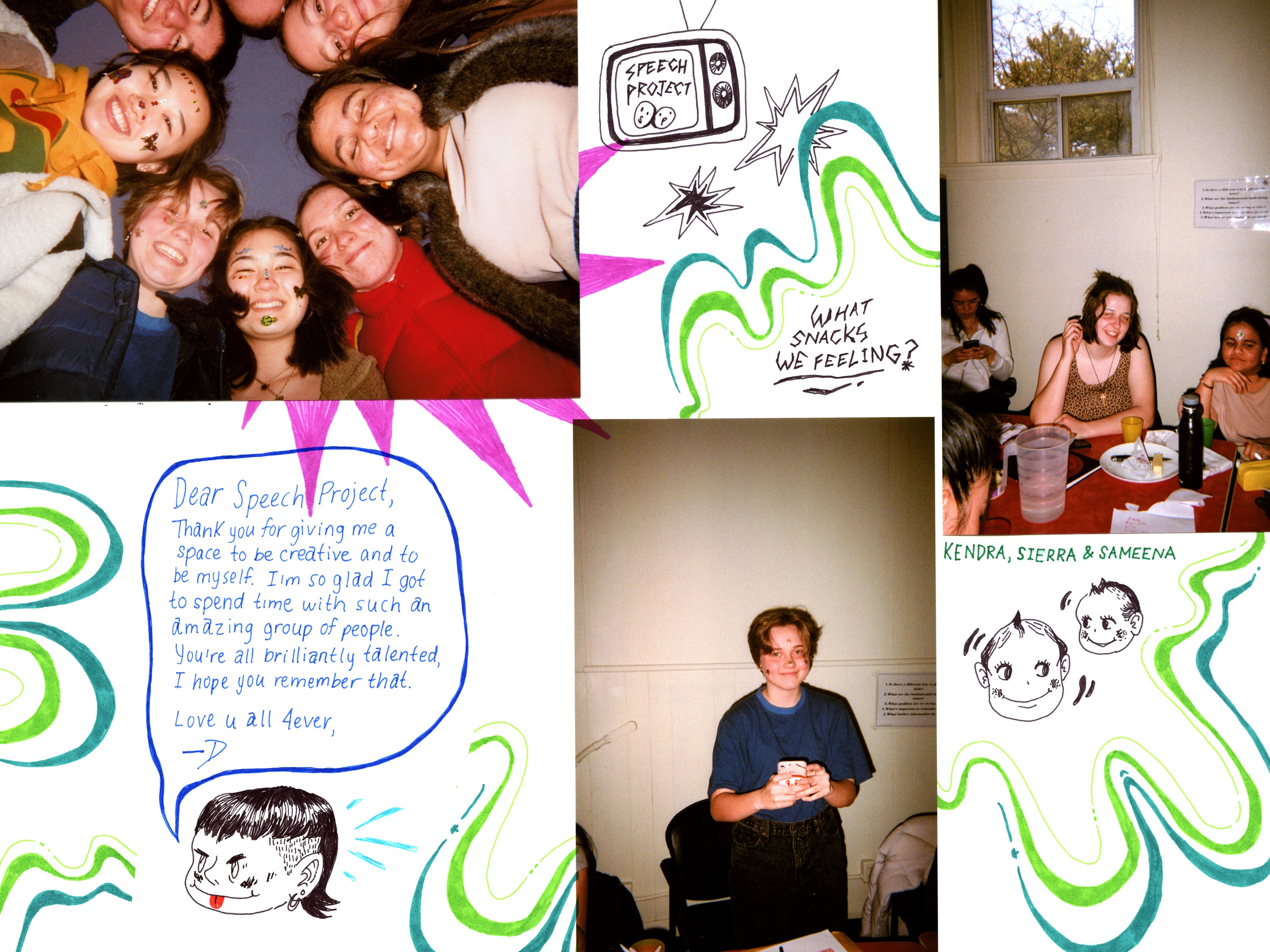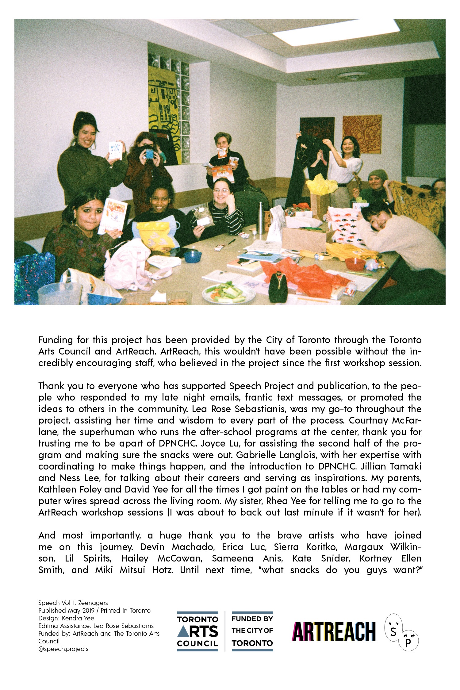 From September 2018 to March 2019, Speech Project was a weekly meet up of 10 teens who laughed, discussed, snapped pictures, drew, painted, chatted, danced, designed, ate snacks, and told stories together. The sessions took place at Davenport-Perth Neighbourhood and Community Health Centre (DPNCHC), a multi-service agency located in Toronto’s West End. Participants from different areas and high schools across the city came together to create comics based off of their personal narratives.